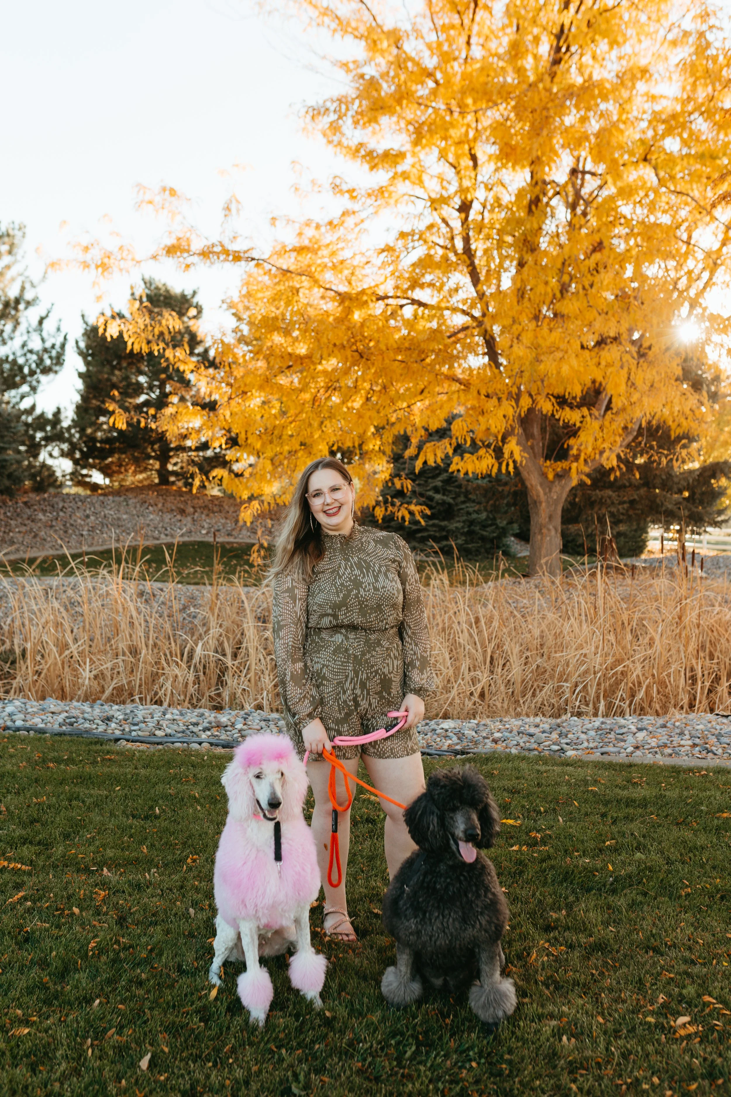 She shares a home with 4 Standard Poodles, and the occasional litter of puppies. Her dogs enjoy a wide variety of sensory enrichment, from nose games, puzzle toys, and outdoor activities like hiking and paddle boarding, to disc dog league, canine massage, and training games.